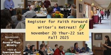 Rev. Laurie Graber, through prayer, received the vision for FFWR. The vision she received was: "Everyone has a journey with their Savior and God has given everyone a story. God wants us to share our stories through writing about them."